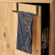 Japanese Ocean Waves Abstract Navy Blue Gold Brown Tea Towel