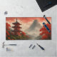 Immerse yourself in the harmony of nature and tradition with this desk mat featuring a vibrant red Japanese pagoda nestled among fiery autumn trees and cascading waterfalls. A misty mountain looms in the background, while a lone bird glides through a glowing red-orange sky, evoking the calm of sunrise or sunset. Perfect for those who appreciate cultural elegance, tranquil landscapes, and contemplative beauty in their workspace.