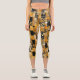 Japanese Patchwork in Gold and Black – Custom Text Capri Leggings