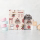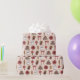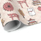 Wrapping paper with cute asian pattern containing japanese maneki neko, lucky coins, umbrellas, torii gates, lanterns, bonsai trees and temples.