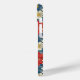 Customize this gorgeous red and cream on blue Japanese Chiyogami floral design iPhone 15 case with your your name in a trendy modern CAP font in cream on blue. It's so beautiful!