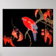 Japanese Red Parrot on tree branch by Ito Jakuchu Poster