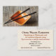 This Japanese restaurant business card displays a simple design of two chopsticks balanced on a square golden coloured bowl. The lines and texture of the mat beneath it complete the interesting abstract effect. Customise all text on the back to fit your special place of dining.