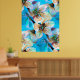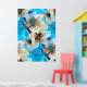 Japanese Sakura Cherry Tree Flowers in Aqua Blue Poster