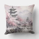 Japanese Sakura Tree Pagoda and Bridge Pink Grey Cushion