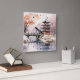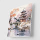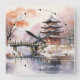 Japanese Sakura Tree Pagoda and Bridge Pink Grey Square Wall Clock