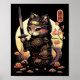 Japanese Samurai Cat Tattoo, Kawaii Ninja Cat Poster