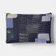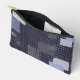 Dark blue cosmetic bag with traditional japanese sashiko printed design that resembles stiches and patches.