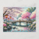 Japanese Scenery with Bridge, Koi and Sakura trees Postcard