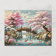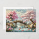 Japanese Scenery with Bridge, Koi and Sakura trees Postcard