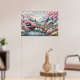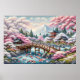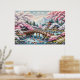 Japanese Scenery with Bridge, Koi and Sakura trees Poster