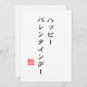 Celebrate Valentine's Day with this unique card featuring a traditional Hanko-inspired design and the Japanese phrase "ハッピーバレンタインでー"(Happy Valentine's Day).