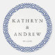 Japanese Seigaiha Waves Custom Names+Date Wedding Classic Round Sticker