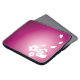 A purple gradient laptop sleeve with an illustration of two Japanese snow rabbits, two sakura flowers, and four sakura flower petals on the lower right corner, leaving space for text on the left.