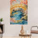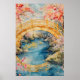 Japanese-style arched bridge spans a tranquil rive poster