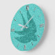 Japanese Swallow in Flight, Turquoise and Aqua Large Clock