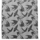 Shower curtain in a Mixed Media textile print of swallows in flight, in a vintage Japanese cloud pattern against a swirl patterned background, in deep charcoal grey / grey, light silver grey, and white