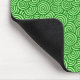 Digital reproduction of a repeating swirl pattern based on traditional Japanese textile designs, represents water or mist - pine green with a light lime green background