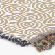 A quality printed throw has its advantages. This is a much finer weave throw than its loopier cousins, and though lighter, it is worth the investment for custom room accessorizing. The back is much prettier than the typical brown, and the fringe on the long sides very vivid, the selvage nicely done. Before photographing, I washed the throw in cold water, delicate, with a thicker woven throw the same size. On tumble dry low, this throw was dry in half the time as the other. This is a very practical quality if you use throws for furniture covers or to wrap up in frequently. The sleekness of the fabric makes it a great layer for accenting or protecting without the feeling of sitting on too much stuff. Perfect for napping or when you feel a light chill coming on. The color printing is beautiful and on this fabric, matched the design and color of my Photoshop image. This is an advantage for blending room fabrics and colors. The fringe on the short sides prints the colors from the design image and therefore varies from the side fringe. I streaked a white fractal line through the plaid pattern to give the illusion of weaving. This printed as crisp as an illusory thread, and put some white in the short side fringe, showing another advantage of print vs loomed- for artistic purposes, line lines, detail, and color integrity can be planned and preserved. My loomed throws have color limitations and more of a needlepoint texture. Print throws reproduce an exact image. The throw felt a little stiff straight out of the package, but this went away in the first delicate wash. Of course I searched the wash water for ink or bleeding and there was none.