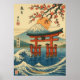 Japanese Torii Gate and Mount Fuji with Waves Poster