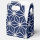 Wagara traditional Japanese design Asanoha geometric print in white on a deep blue background representing leaves. A sophisticated and traditional pattern to dress up any occasion.