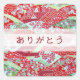 Japanese Washi Art Red Floral “Thank You” Square Sticker
