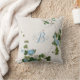 This lovely home decor throw pillow features a copy of a delicate Japanese botanical watercolor of stems with simple blue flowers. Personalise it with your own name and initial.