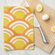 Japanese Wave Seigaiha Pattern Yellow Orange Tea Towel