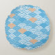 Japanese Waves Pattern Light Blue Beige White Round Cushion