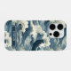 Make a statement with this iphone 16 pro phone case that features rolling Japanese waves in multiple shades of teal blue. It's modern yet traditional. The pattern represents surges of good luck, peace, and eternal resilience. It becomes uniquely yours with your name in a CAP font in white on dark teal.