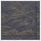 Japanese Waves Pattern Navy Blue and Gold Brown Fabric