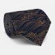 Japanese Waves Pattern Navy Blue and Gold Brown Tie