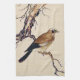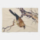 Japanese Woodcut of a Finch, Brown and Beige Tea Towel