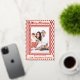 This elegant red and cream design blends cultural inspiration with a clean, contemporary layout, creating a unique and refined way to share your holiday greetings. The bold geometric border frames your photo beautifully, while the personalized message adds a warm, heartfelt touch.