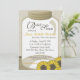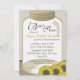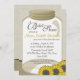 A jar full of bridal shower information, whimsical and fun style over the rustic look of burlap and accented with sunflowers. Change text to suit any style. All parts of this invitation are printed. There is no real burlap attached.