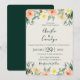 Watercolor garden flowers and botanical greenery arrangements on dove and emerald background, wedding invitation. Customise text, font style, colour and size.