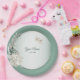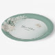Jasmine Floral Green Geometric Wedding Party Paper Plate. Unique, beautiful, modern design. Easy to be personalized. Font style, size and colors can be changed. Matching items available.