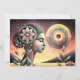 Colourful abstract graphic artwork of a woman adorned in flowers, sun and stars, with a watercolor effect and textures.