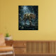 A sleek jasmine leopard moves silently through a moonlit jungle where danger meets floral elegance. Powerful leopard anatomy merges with jasmine blossoms, glossy leaves, vine textures, and subtle rosette patterns across its graceful body. Silver light beams, carved stone ruins, drifting petals, misty pathways, and dense tropical foliage create a rich cinematic setting. This luxurious fantasy predator design brings bold sophistication to modern interiors, offices, bedrooms, or statement gift collections. Perfect for leopard lovers, jungle decor fans, and dark botanical style themes.