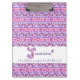 Pretty hand drawn initial letter J monogram name and meaning girls clipboard. Ideal for a personalised gift for a girl who has a name that starts with the letter J. This example reads Jasmine A sweet flower, courageous, honest & determined or you can customise the text with your own if required. Makes a unique Birthday or Christmas gift. If you need help with your own personalised name please contact me. © Letter J typographical hearts and flowers drawing and pattern in shades of pink and purple is uniquely created by Sarah Trett for www.mylittleeden.com