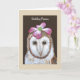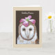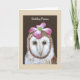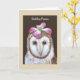 Barn owl with dogwood hat. "Birthday Princess" greeting on front