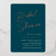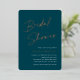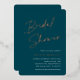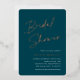 Invite guests to celebrate the bride to be with these modern and minimal bridal shower invitations with stunning rose gold foil accents. Simple design features "bridal shower" in casual handwritten script, with your event details aligned at the right in modern white lettering on a dark jewel tone green background.