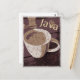 A vintage rustic framed illustration of a filled coffee mug in coffee - earth tones colours with the text " Java ".