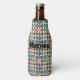 This bottle cooler has a Bauhaus design of ovals four layers thick on a field of white.