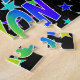 This vibrant and lively birthday-themed jigsaw puzzle design has the message "HAPPY BIRTHDAY, JAXON" with the characters having a colourful rainbow spectrum inspired gradient pattern, in addition to a fun star field background pattern. An exciting puzzle like this might be a fun way to send birthday greetings to somebody named Jaxon. [~Z0000468]