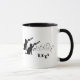 Two cool cats in silhouette work at playing trumpets for an adoring crowd of mice with music notes flying around on a two-toned coffee mug.