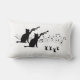Two cool cats in silhouette play trumpet for a group of adoring mice with staff and music notes in the background on this comfortably sized lumbar pillow. Available in different fabrics too.