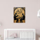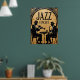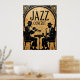 This stylised painting is a graphic depiction of a jazz concert. Two musicians, rendered in black silhouettes, are seated and performing, one playing a trumpet and the other a saxophone. The background is a large, textured gold circle with the words "JAZZ CONCERT" in bold black letters. The artwork has a minimalist yet elegant aesthetic, combining the classic feel of a jazz performance with a modern, decorative style.
