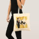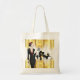 Tote bag for jazz lovers. Design features a jazz singer and her band against a backdrop that looks like shimmery gold glitter.