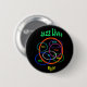 For those who love jazz, this button is a celebration of the very best of the bebop and post-bop eras. Colourful circles of red, blue, purple, white and turquoise enclose some of the great musicians. All is set off by yellow and green text on a pure black background.